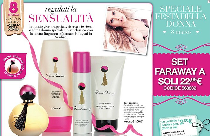 La fragranza più amata per noi donne , e proprio per festeggiare noi stesse nel giorno della festa della donna ecco il set far away a soli € 22,95 invece di € 61,00